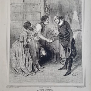 Honoré Daumier (1808-1879), peintre, sculpteur, dessinateur, graveur, lithographe et caricaturiste, sans doute l’un des plus grands artistes français du 19ème siècle. Artiste républicain engagé sous tous les régimes politiques qu’il a connu. Il a produit plus de 4.000 lithographies et plus de mille bois sans compter ses peintures, gouaches, aquarelles, dessins, etc.