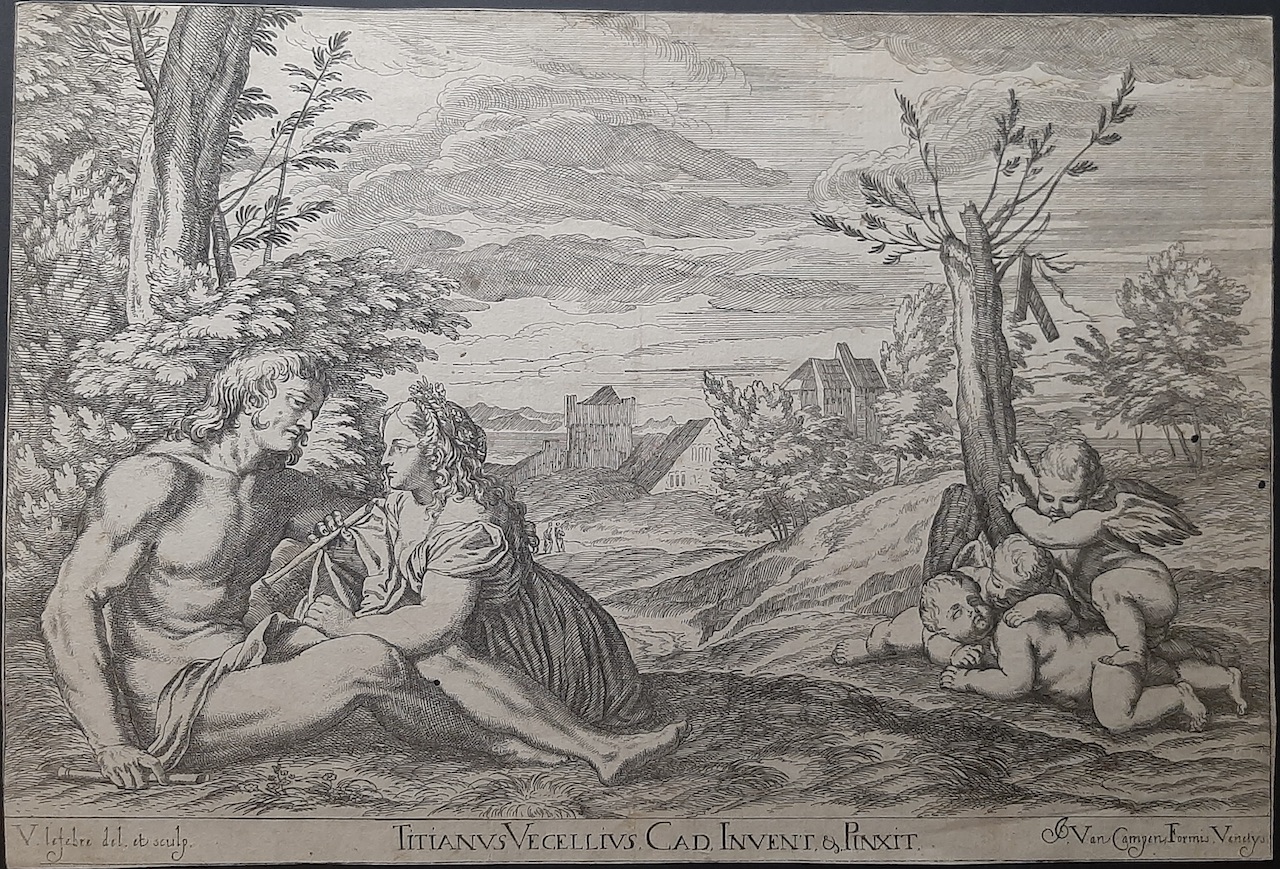 Belle épreuve sur papier vergé, d’après une peinture de Titien, publiée par Giacomo van Campen (fl. 1680-1684) en 1682.