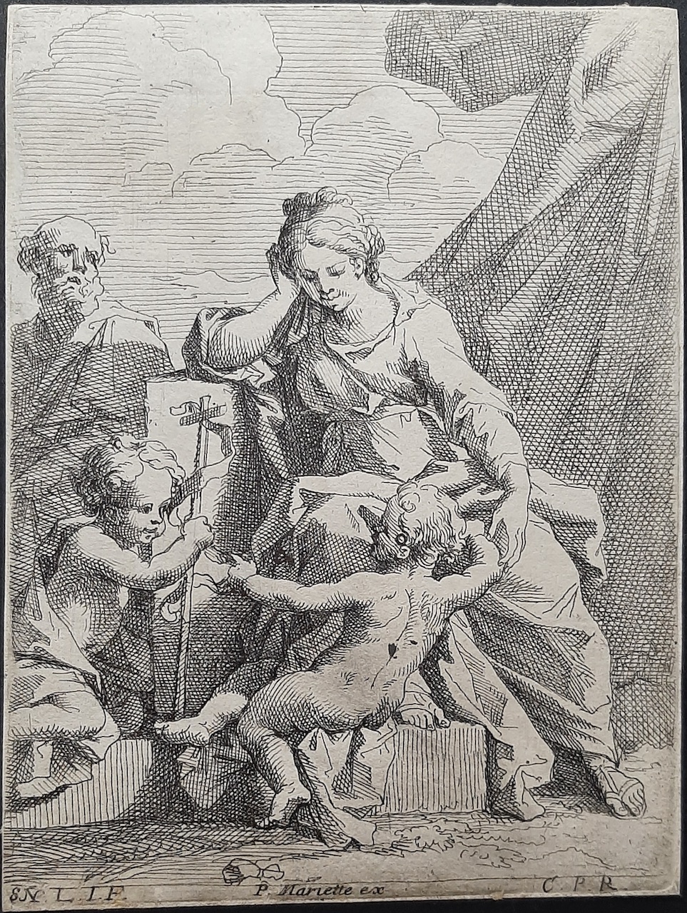 Epreuve sur papier vergé, 2ème état avec le numéro 8 (à gauche), les initiales du Maitre et l’adresse de P. Mariette. Coupée au cuivre.